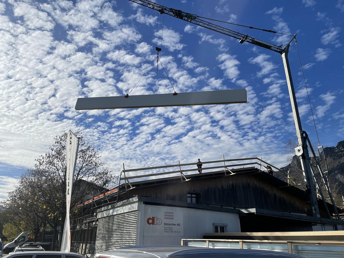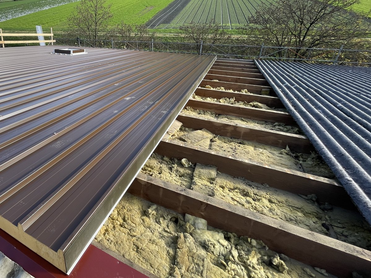 Im November wurde das 40 Jahre alte Eternitdach durch neue, dämmende Sandwichpaneelen ersetzt.